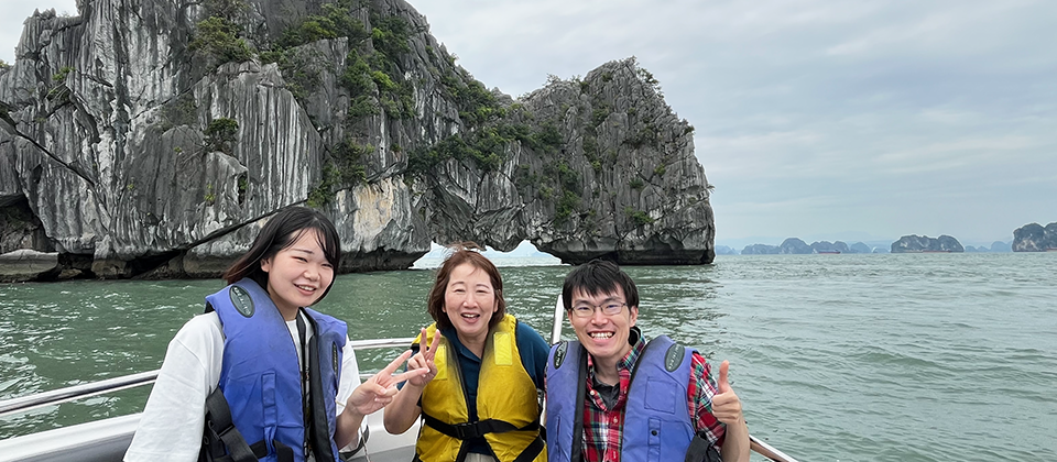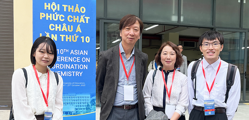 ベトナムのハノイ教育大学で行われた錯体化学アジア会議に参加しました。教員は招待講演、院生2名はポスター発表。横溝さんはフラッシュプレゼンテーションにも挑戦しました。錯体化学に加え、ノーベル物理学賞のノボセロフ教授の話も聞けました。写真左は会場で藤田先生と、右はハロン湾での語学&地質学習の様子。